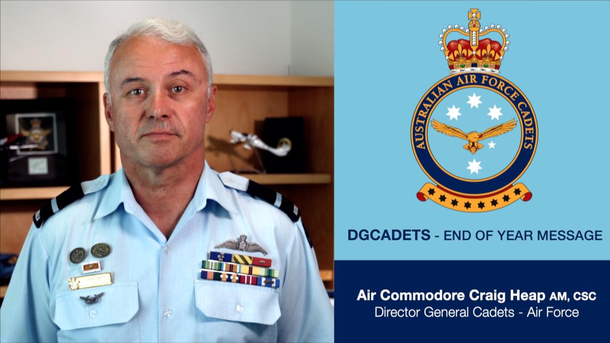 DGCADETS-AF 2024 End Of Year Message Breadcrumb Home Video DGCADETS-AF 2024 End Of Year Message 21 November 2024 In this end of year video, the Air Force Director General - Cadets - Air Commodore Craig Heap, not only reflects this year, but the exciting innovations and opportunities available to all cadets and staff in 2025! Share this page Facebook Twitter LinkedIn Email